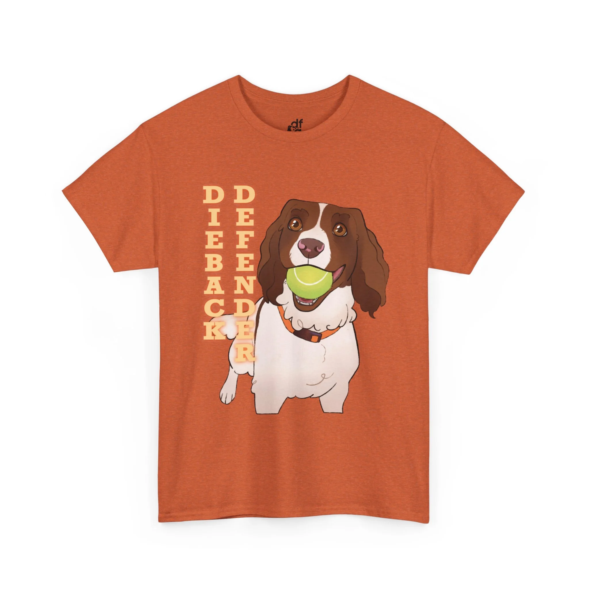 This tee celebrates Powerhouse Kelly, the ball-obsessed springer spaniel and Phytopthora cinnamomi detection dog, with fab bold artwork by Alex Pilgrim-Byrne. Rocking the “dieback defender” message loud and proud!